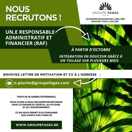 Le Groupe Fages recrute un.e Responsable Administratif et Financier (RAF) à La Réunion.